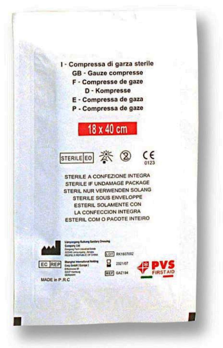 Benda di garza sterile e inodore 18x40 cm.REPERTORIO DISPOSITIVI MEDICI Ministero della Salute nr. 1605360 CND M0201010101
