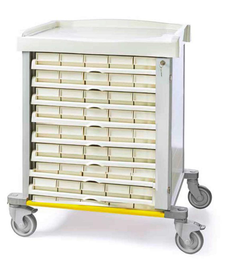 VANO FRONTALE attrezzato con cassetti in materiale plastico stampato con bordi arrotondati,