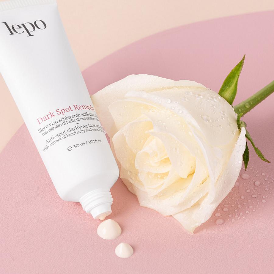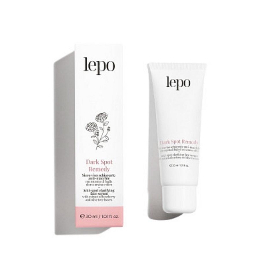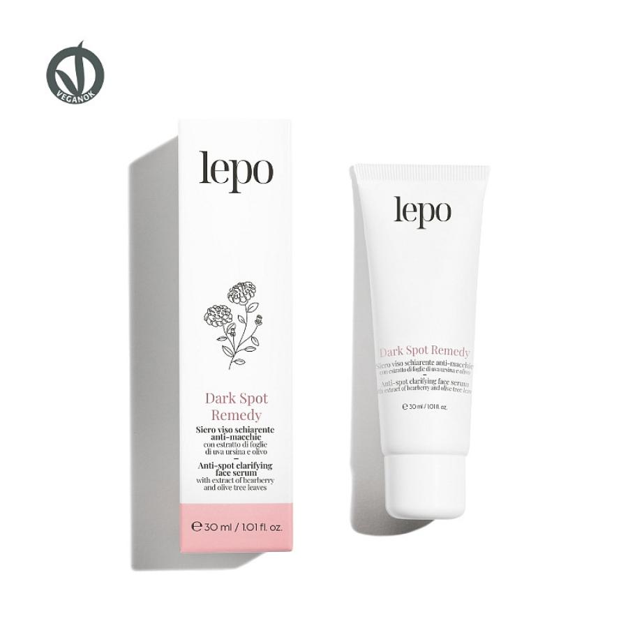 Dark Spot Remedy di Lepo è un siero viso ad azione schiarente intensiva, formulato per contrastare efficacemente le iperpigmentazioni cutanee di diversa origine: esposizione solare, invecchiamento, squilibri ormonali, trattamenti fotosensibilizzanti o esiti post-infiammatori.Grazie alla sinergia tra estratto di foglie di uva ursina e olivo, questo trattamento regola la produzione di melanina e riduce visibilmente le macchie scure, migliorando l' uniformità e la luminosità dell' incarnato. La sua formula naturale al 97% è dermatologicamente testata, non fotosensibilizzante e adatta anche alle pelli più sensibili e reattive.Contiene inoltre:Estratto secco di rusco titolato: azione lenitiva e uniformante, migliora il microcircolo cutaneo.Fermenti da buccia di limone: proprietà schiarenti, antiossidanti e illuminanti.Biossido di titanio: protegge dai raggi UV e offre un leggero effetto camouflage.Applicare mattina e sera sulla pelle detersa, picchiettando delicatamente fino a completo assorbimento. Per risultati ottimali, si consiglia un uso continuativo per almeno 2-4 mesi. I primi miglioramenti sono visibili già dopo 4 settimane.Il prodotto è Vegan OK, Nickel Tested, Animal Friendly e confezionato in un flacone 100% riciclabile. L' astuccio è realizzato con materiali certificati FSC® e ridotto al minimo per un approccio sostenibile.Perfetto come parte di una routine dermocosmetica quotidiana, Dark Spot Remedy è un alleato professionale per il trattamento delle discromie cutanee, senza compromettere la tollerabilità cutanea.