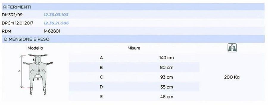 Imbracatura per sollevamalati – Modello STANDARD con poggiatesta – Portata max 200 Kg – Made in Italy