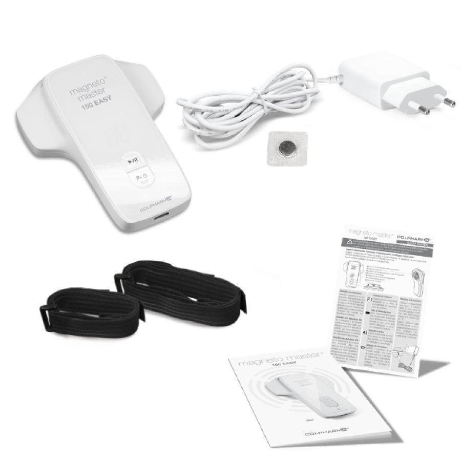 Il Magneto Master 150 EASY è un dispositivo portatile per magnetoterapia, progettato per l'uso domiciliare. Utilizza Campi Elettromagnetici Pulsati (PEMF o CEMP) per offrire trattamenti efficaci. Grazie al suo design compatto e leggero, può essere facilmente indossato sopra vestiti e gessi. Alimentato da batterie ricaricabili di lunga durata, consente trattamenti in totale libertà e in qualsiasi situazione.Caratteristiche tecniche: