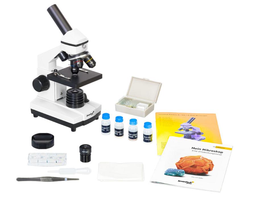 I microscopi luminosi e stilosi Rainbow 2L PLUS sono la logica continuazione della serie Levenhuk Rainbow 2L. I nuovi microscopi combinano tutti i vantaggi della linea precedente con le nuove vantaggiose funzioni. Questi microscopio sono equipaggiati con due sistemi di illuminazione – potrete quindi osservare campioni trasparenti, semi trasparenti e opachi. Ogni modello è completo di un kit di esperimenti Levenhuk K50 – questo kit aiuterà i giovani ricercatori con i loro primi esperimenti e le prima ricerche indipendenti. La differenza principale dei nuovi microscopi sono i loro elementi ottici migliorati. Possiedono un potere di ingrandimento superiore (fino a 640x) e possono essere usati per ricerche serie da parte di studenti di biologia. Tutti i microscopi sono equipaggiati con lenti obiettivo a molla – il loro design evita ogni danno, anche se l'obiettivo tocca il vetrino durante il processo di messa a fuoco. I microscopi Levenhuk Rainbow 2L PLUS hanno un corpo metallico affidabile – sono noti per la loro lunga vita anche se usati in maniera intensa in università o laboratori. E, ovviamente, dobbiamo parlare del loro design moderno e dei loro cinque colori luminosi – uno di questi bei microscopi starà benissimo nella styanza di vostro figlio o sulla vostra tavola. Elementi ottici eccellenti II microscopi biologici Levenhuk Rainbow 2L PLUS sono fatti solo dei materiali della più elevata qualità. Le lenti sono fatte di uno speciale vetro ottico altamente trasparente. Per una miglior trasmissione della luce, le superfici ottiche sono rivestite di strati multipli di rivestimento antiriflesso, che aumenta la nitidezza e il contrasto delle immagini prodotte. Il kit comprende tre lenti obiettivo che producono un ingrandimento di 64x, 160x e 640x. La lente obiettivo più potente (40x) ha uno speciale meccanismo a molla per la sicurezza degli elementi ottici. Illuminazione combinata Uno dei vantaggi principali del modello – il microscopio è equipaggiato con due illuminazioni a LED. L'illuminazione inferiore è usata per vedere i campioni trasparenti, come liquidi o piccole sezioni di piante e tessuto animale. L'illuminazione superiore consente di osservare oggetti opachi – carta, minerali, tessuto e metallo. Se accendete entrambe le illuminazioni, potrete osservare oggetti semi-trasparenti. Potete regolare la luminosità per una miglior visualizzazione. Corpo comodo e durevole Il corpo affidabile è fatto in metallo – può sopportare facilmente l'uso frequente e servirvi per molti anni. Per una maggior comodità, la testa monoculare è inclinata di 45 gradi. Inoltre, può essere ruotata di 360 gradi – ed è molto comoda per il lavoro di gruppo basterà ruotare la testa senza muovere il microscopio. Lo strumento può essere usato all'interno e all'esterno – il microscopio funziona tramite presa o batterie. Attenzione: Fare riferimento alla tabella delle specifiche per la corretta tensione di rete e non tentare mai di collegare un dispositivo da 110 V nella presa da 220 V e viceversa, senza utilizzare un convertitore. Ricordate che la tensione di rete negli Stati Uniti e in Canada è di 110 V e 220–240 V nella maggior parte dei paesi europei. Kit per esperimenti La confezione comprende il kit per esperimenti Levenhuk K50. Contiene tutto il necessario per i vostri primi esperimenti: vetrini da microscopio pronti all'uso, strumenti speciali per farli e un'utilissima guida con informazioni sul microscopio, consiglio per l'uso e descrizioni di esperimenti. Caratteristiche: Microscopio biologico con ingrandimento di 64–640x Disponibile in cinque colori luminosi Corpo metallico robusto e durevole Sistemi di illuminazione a LED superiore e inferiore Kit di esperimenti incluso Il kit comprende: Microscopio Obiettivi: 4x, 10x e 40xs Oculare: WF16x Tavolino portaoggetti con levetta Diaframma Condensatore Illuminazione LED integrata superiore e inferiore Adattatore CA Kit per esperimenti Levenhuk K50 Manuale utente e garanzia a vita Il kit per esperimenti Levenhuk K50 include: Guida per l'utente "Microscopio affascinante. Scrutare il microcosm" Pinzette Incubatore per Artemie (gamberi di acqua dolce o artemie saline) Microtomo Flacone con lievito Flacone con pece Flacone con sale marino Flacone con gamberi di acqua dolce 5 preparati 5 vetrini vuoti Contagocce Custodia anti-polvere Immagini del microscopio Levenhuk Rainbow 2L PLUS, Ametista realizzate da Kort Kramer: Alcune cose che si possono osservare al microscopio: Il microscopio Levenhuk Rainbow 2L PLUS è compatibile con le fotocamere digitali Levenhuk (acquistate separatamente). Le fotocamere Levenhuk sono installate nel tubo dell'oculare, al posto di un oculare. Tabella comparativa dei microscopi Levenhuk Rainbow Levenhuk Rainbow 2L Levenhuk Rainbow 2L PLUS Levenhuk Rainbow 50L Levenhuk Rainbow 50L PLUS Tipo biologico biologico biologico biologico Testa monoculare, inclinata a 45° monoculare, rotabile a 360°, inclinata a 45° monoculare, rotabile a 360°, inclinata a 45° monoculare, rotabile a 360°, inclinata a 45° Materiale corpo plastica metallo plastica metallo Ingrandimento, x 40–400 64–640 40–800 64–1280 Materiale lenti vetro ottico vetro ottico vetro ottico vetro ottico Oculari WF10x WF16x WF10x WF16x Obiettivi 4x, 10x, 40x 4x, 10x, 40xs 4x, 10x, 40xs 4x, 10x, 40xs Lenti di Barlow no no 2x 2x Portaobiettivi rotante 3 obiettivi 3 obiettivi 3 obiettivi 3 obiettivi Diametro tubo ottico, mm 23,2 23,2 23,2 23,2 Tavolino portaoggetti, mm 90x90, con levetta 90x90, con levetta 90x90, con levetta 90x90, con levetta Raggio di movimento del tavolino, tramite meccanismo di messa a fuoco, mm 0–15, verticale 0–8, verticale 0–11, verticale 0–11, verticale Messa a fuoco macrometrica macrometrica macrometrica macrometrica Condensatore NA 0,65, diaframma (6 aperture) NA 0,65, diaframma (6 aperture) NA 0,65, diaframma (6 aperture) NA 0,65, diaframma (6 aperture) Illuminazione illuminazione LED superiore e inf