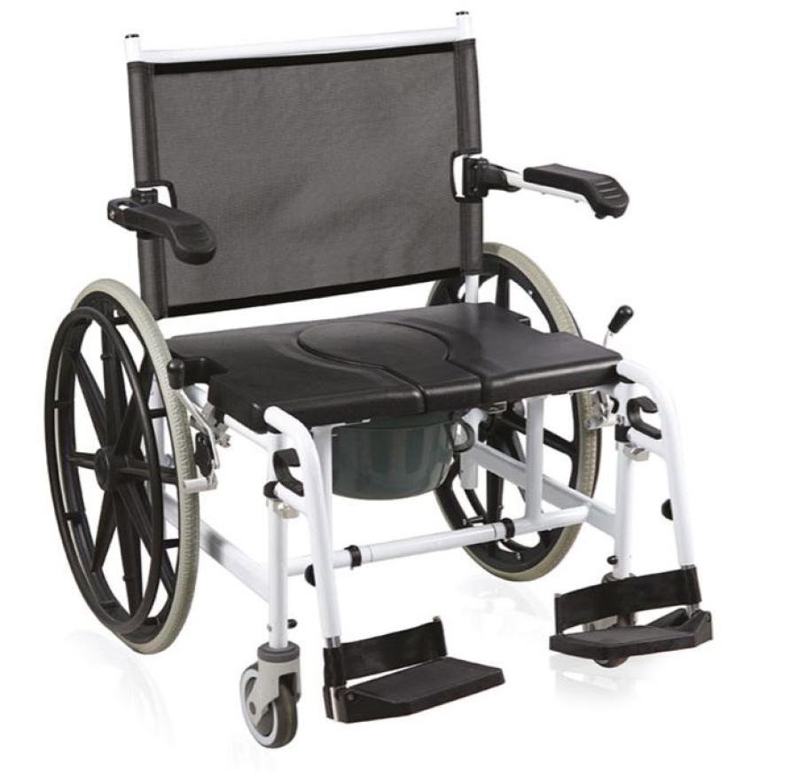 Struttura in alluminio verniciato. Sedile in PU e schienale a rete. Braccioli ribaltabili. Seduta con apertura centrale per consentire l' utilizzo del secchio. Pedane ribaltabili ed estraibili.L' assistenza in bagno: solo quando serve ed in tutta sicurezza