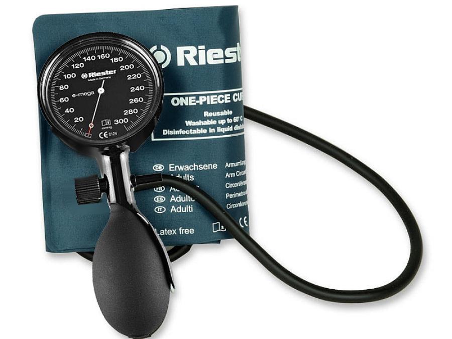 Sfigmomanometro Riester e-mega bianco, 1 tubo per adulti, senza lattice