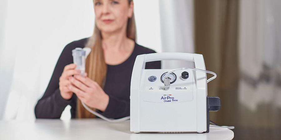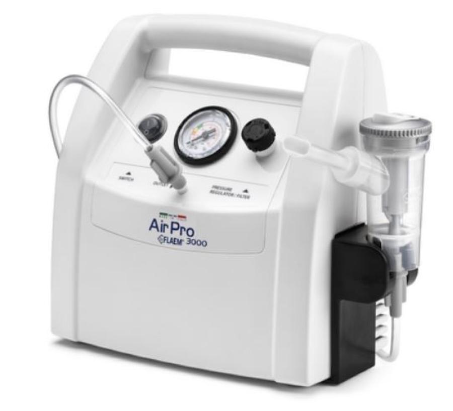 L'aerosol professionale FLAEM AIR PRO 3000 Plus è progettato per un uso clinico-ospedaliero e per il noleggio. Questo dispositivo ad alte prestazioni è dotato di un potente compressore di lunga durata, ideale per un utilizzo continuo. Veloce e silenzioso, è facilmente trasportabile grazie alla maniglia ergonomica integrata. Include un porta-ampolla posizionabile su entrambi i lati e un filtro ad alta efficienza visibile attraverso un cappuccio trasparente per una facile valutazione dello stato di pulizia.Il dispositivo è fornito con l'ampolla RF7 Dual Speed Plus a due velocità, dotata di sistema valvolare, compatibile con mascherine soft-touch per il massimo comfort di adulti e bambini.Caratteristiche tecniche: