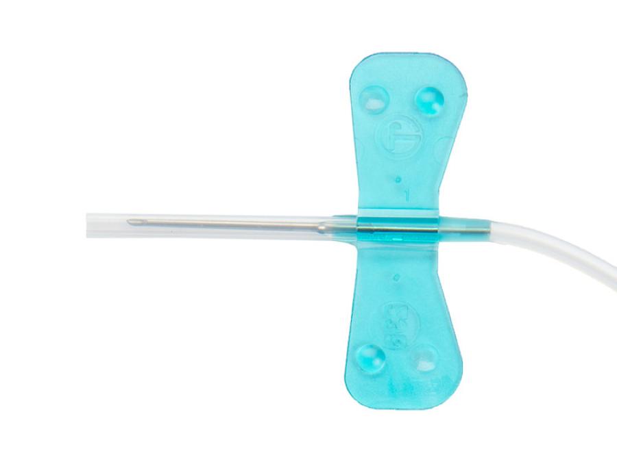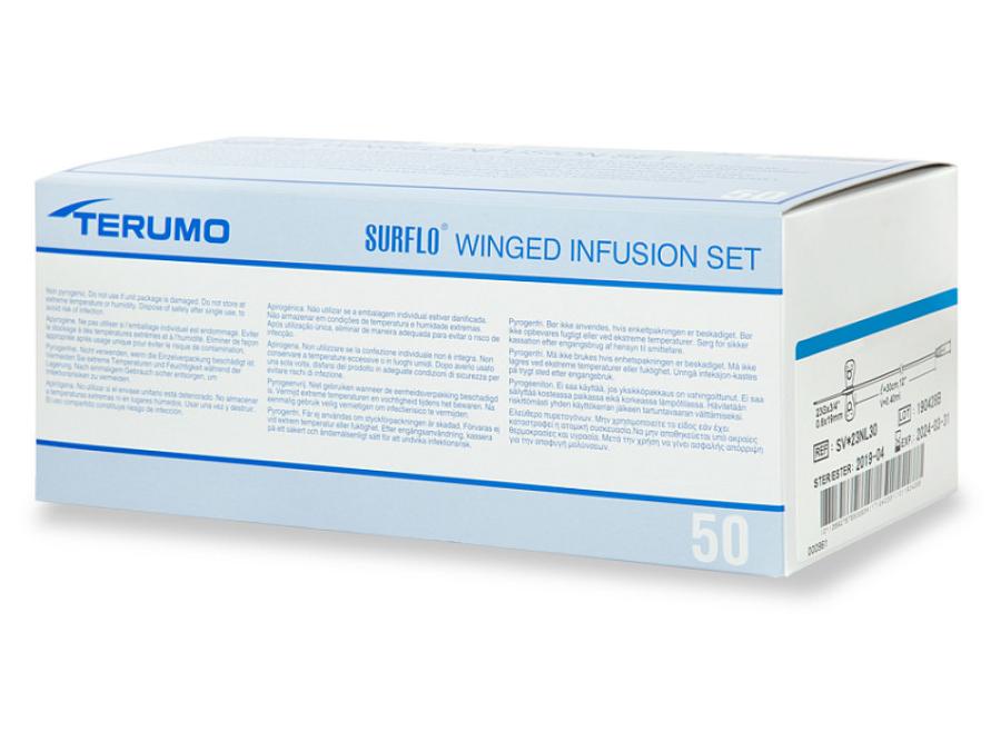 AGHI A FARFALLA SURFLO - sterili Codice TERUMO: SV*23NL30 Ago: 23G – 0,6 × 19 mm Colore: blu Minimo vendita: conf. da 50 Gli aghi a farfalla Surflo (microperfusori) sono studiati per introdurre fluidi nel sistema vascolare dopo la venipuntura. Per garantire stabilità e presa durante la venipuntura, sono dotati di alette a incastro con codice colore. Grazie alla leggera angolazione delle alette (