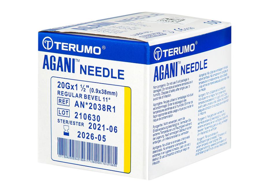Aghi ipodermici terumo agani 20gx1 1/2” - 0,9x38mm - an*2038r1 giallo - sterili - conf. 100 pz.