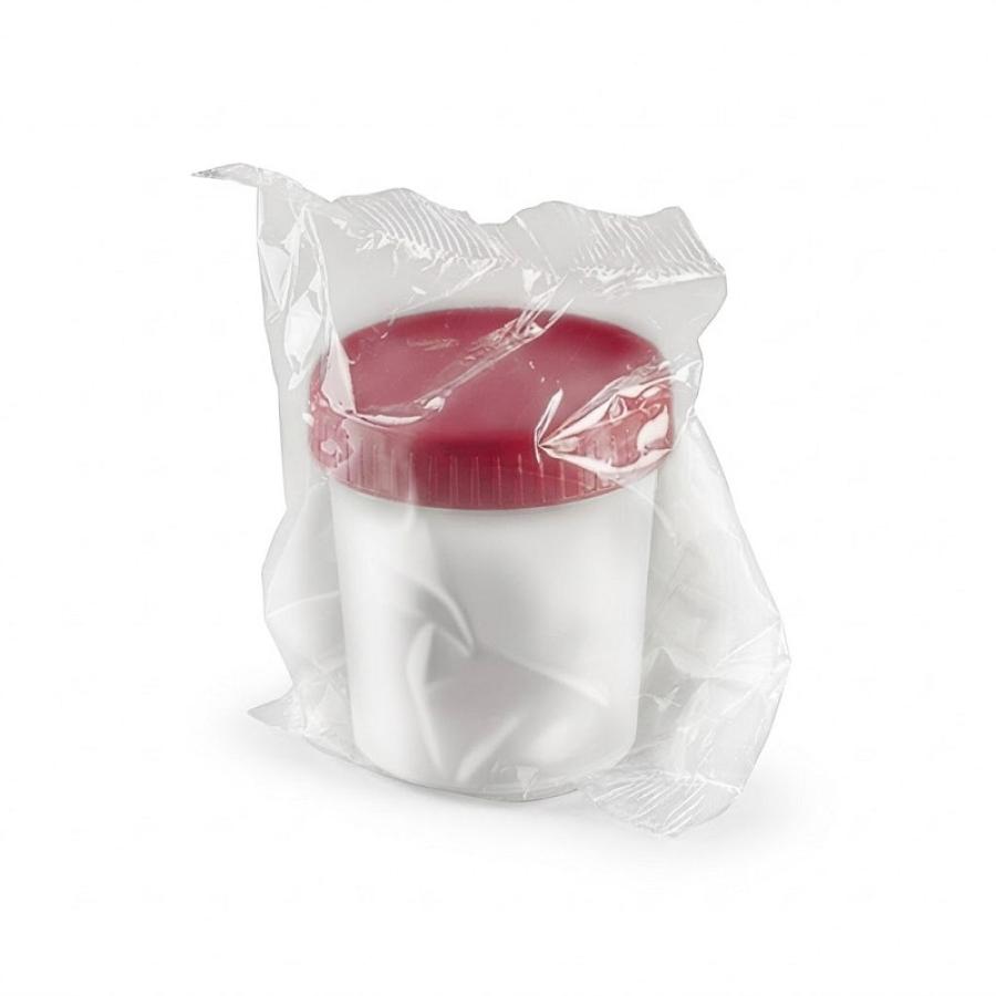 Contenitore per urina 120 ml polipropilene trasparente con tappo vite rosso sterile in confezione singolaCaratteristiche tecniche: