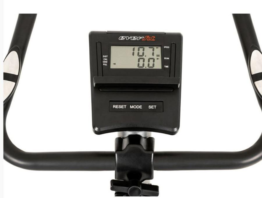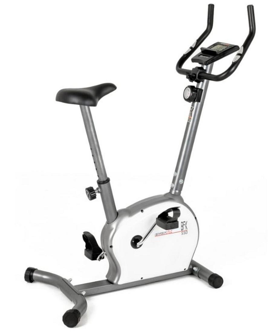 Bike BFK-550 della linea Everfit con massa volanica da 5 Kg.Sostituisce, la BFK 500, mantenendone le ben note qualità , rinnovandone il colore del telaio e arricchendone le dotazioni in modo significativo.La BFK 550, oltre alla regolazione in inclinazione del manubrio, è ora dotata di manettino di regolazione altezza sella a molla, per un azionamento assai più confortevole, di computer d' allenamento dotato di display di dimensioni più che doppie rispetto al passato e dotato di leggio per ospitare lo smartphone o il tablet.Compatta e leggera è la bike ideale per l'allenamento home fitness o per utilizzo riabilitativo a casa.Sul pratico display è possibile visualizzare le informazioni riguardanti il tempo, le calorie consumate, la velocità , odometro, pulsazioni e scan.La sella è regolabile in verticale mentre il manubrio inclinabile permette di ottenere il massimo comfort durante l'allenamento.La bike permette di eseguire un allenamento aerobico , ottimo per tenere in allenamento il sistema cardiovascolare , la forma fisica e in special modo gli arti inferiori del corpo.Dimensioni imballo 61x22,5x52,5 cm