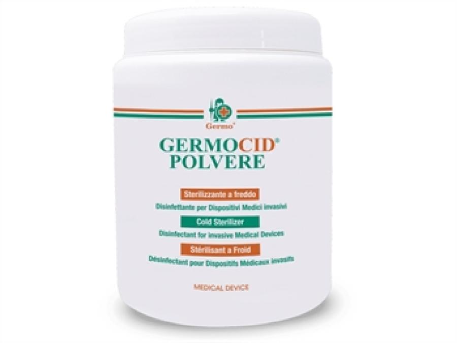 GERMOCID POLVERE è un sterilizzante a freddo in barattolo da 500 g, confezione da 2 pezzi. L'acido peracetico, formato dalla reazione tra sodio percarbonato e tetracetiletilendiammina, garantisce un'efficace attività biocida contro spore, virus (HIV, HBV, HCV), batteri, micobatteri e funghi. Alla concentrazione dell'1,6%, il prodotto completa la sterilizzazione in 10 minuti. È attivo dopo 15 minuti dalla dissoluzione e mantiene l'efficacia per un massimo di 24 ore. Ideale per la sterilizzazione e disinfezione rapida a freddo di endoscopi, fibre ottiche, strumenti chirurgici e odontoiatrici, trasduttori e altro. Funziona anche in presenza di materiali organici, previa pulizia del dispositivo con un detergente idoneo, preferibilmente a base enzimatica. Adatto per l'uso con lavaendoscopi automatici. Non ha impatto ambientale: il residuo si degrada immediatamente in acido acetico, acqua e ossigeno a contatto con le acque di scarico. Etichetta e istruzioni disponibili in GB, FR, IT. Prodotto in Italia. Composizione chimica: