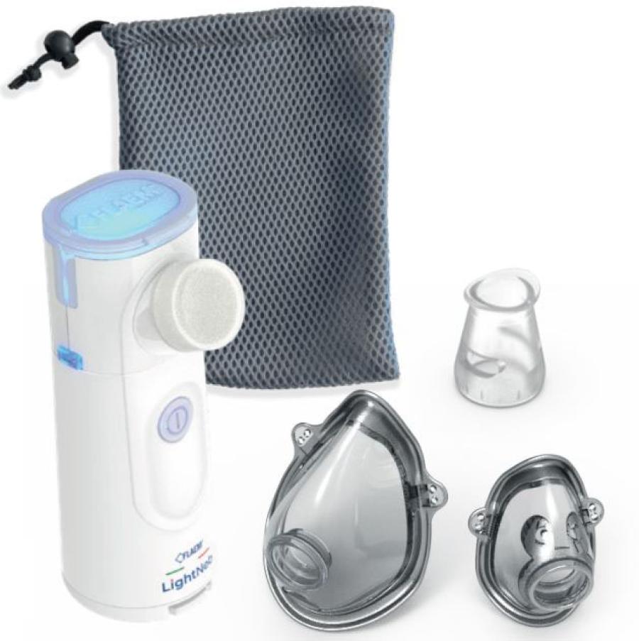 LightNeb - Aerosol Dispositivo Mesh portatile, silenzioso ed efficienteDispositivo mesh portatile, silenzioso ed efficiente. Testato per nebulizzare farmaci in sospensione come beclometasone e budesonide (corticosteroidi).PORTATILE Piccolo, leggero, ergonomico, tascabile.