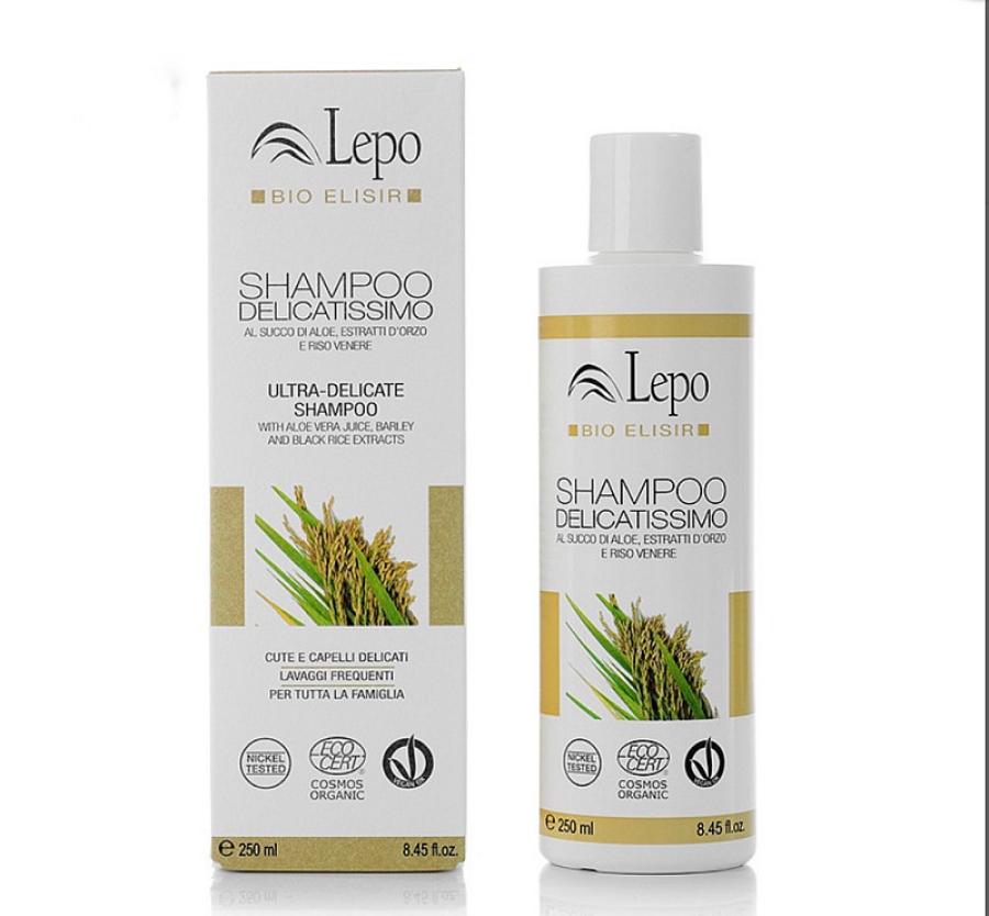di Lepo è formulato per offrire una detersione estremamente delicata, ideale per lavaggi frequenti e per le cuti più sensibili. Grazie alla sua composizione naturale e biologica, è adatto all' uso quotidiano da parte di tutta la famiglia, compresi i bambini.La sua formula innovativa sfrutta le proprietà lenitive e idratanti del succo di aloe vera, noto per la sua azione calmante e rigenerante sul cuoio capelluto. Gli estratti di riso venere, ricchi di antiossidanti, aiutano a riequilibrare la produzione di sebo e a proteggere i capelli dallo stress ossidativo. Le proteine d' orzo formano un film protettivo che rinforza la fibra capillare, migliorando l' elasticità e la resistenza dei capelli. La gomma guar naturale dona morbidezza e facilita la pettinabilità , rendendo i capelli setosi e leggeri.Con una percentuale di ingredienti naturali pari al 97,8% e l' 11,8% proveniente da agricoltura biologica, questo shampoo è certificato biologico COSMOS ORGANIC da Ecocert. Non contiene parabeni, siliconi, PEG, EDTA né OGM. È dermatologicamente testato, Nickel Tested e Vegan OK, per garantire la massima tollerabilità anche sulle pelli più reattive.Ideale per chi cerca un prodotto efficace, sicuro e rispettoso della pelle e dell' ambiente, lo Shampoo Delicatissimo Lepo è la scelta perfetta per una routine di igiene capillare naturale e delicata.