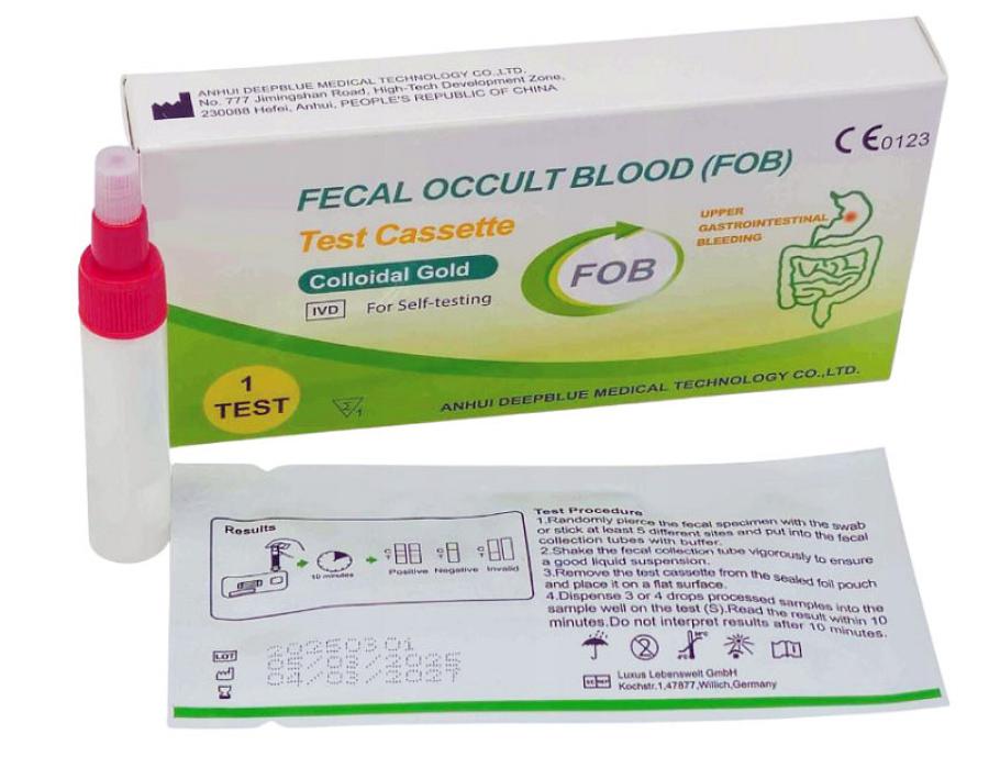 Test rapido Sangue Occulto nelle Feci (FOB) – Autodiagnosi Colon Intestino - 1 pz. Il Test rapido Sangue Occulto nelle Feci (FOB) di Anhui DeepBlue Medical è una soluzione semplice, economica e affidabile per eseguire uno screening intestinale di base direttamente a casa. Progettato per rilevare la presenza di sangue occulto nelle feci, questo test rappresenta un valido strumento di prevenzione per individuare precocemente eventuali disturbi intestinali o patologie del colon-retto. A differenza della versione combinata con transferrina, questo test è essenziale e mirato, ideale per chi desidera un controllo rapido e frequente, senza costi aggiuntivi e con un'elevata affidabilità clinica. Vantaggi principali: Risultato immediato in pochi minuti Economico e adatto a controlli frequenti Facile da utilizzare in autonomia, senza strumenti aggiuntivi Confezione sterile e sicura Clinicamente validato per screening intestinale domiciliare Il test è basato su un immunodosaggio cromatografico a flusso laterale monofase. La striscia reattiva è composta da: un tampone coniugato color bordeaux contenente anticorpi anti-hHb di topo coniugati con oro colloidale una membrana in nitrocellulosa con due linee: la linea T (test), rivestita con anticorpi anti-hHb, e la linea C (controllo), rivestita con anticorpi di capra anti-IgG di topo Quando un volume adeguato di campione viene inserito nel pozzetto del dispositivo, il liquido migra per capillarità lungo la striscia. Se la concentrazione di emoglobina umana (hHb) è pari o superiore a 50 ng/ml, compare una linea bordeaux visibile nella zona T. Se la concentrazione è inferiore al livello rilevabile, la linea T non si sviluppa. Indicazioni d'uso: Per prevenzione personale periodica In presenza di disturbi intestinali ricorrenti Per chi desidera un controllo semplice e veloce senza la complessità di test multipli Contenuto della confezione: 1 cassetta test FOB Reagenti pronti all'uso Istruzioni dettagliate in italiano Avvertenze: Questo test non sostituisce una diagnosi medica. In caso di risultato positivo, è necessario consultare il proprio medico di fiducia. Conservare in luogo fresco e asciutto, lontano da fonti di calore.